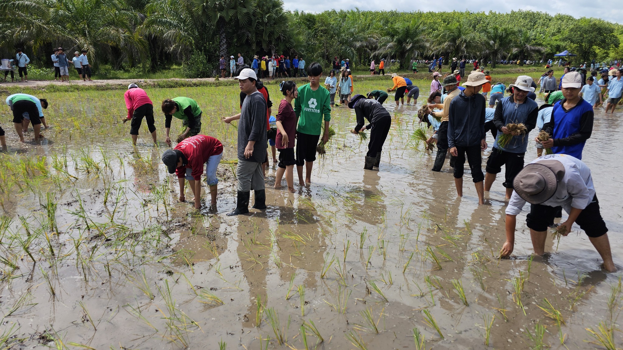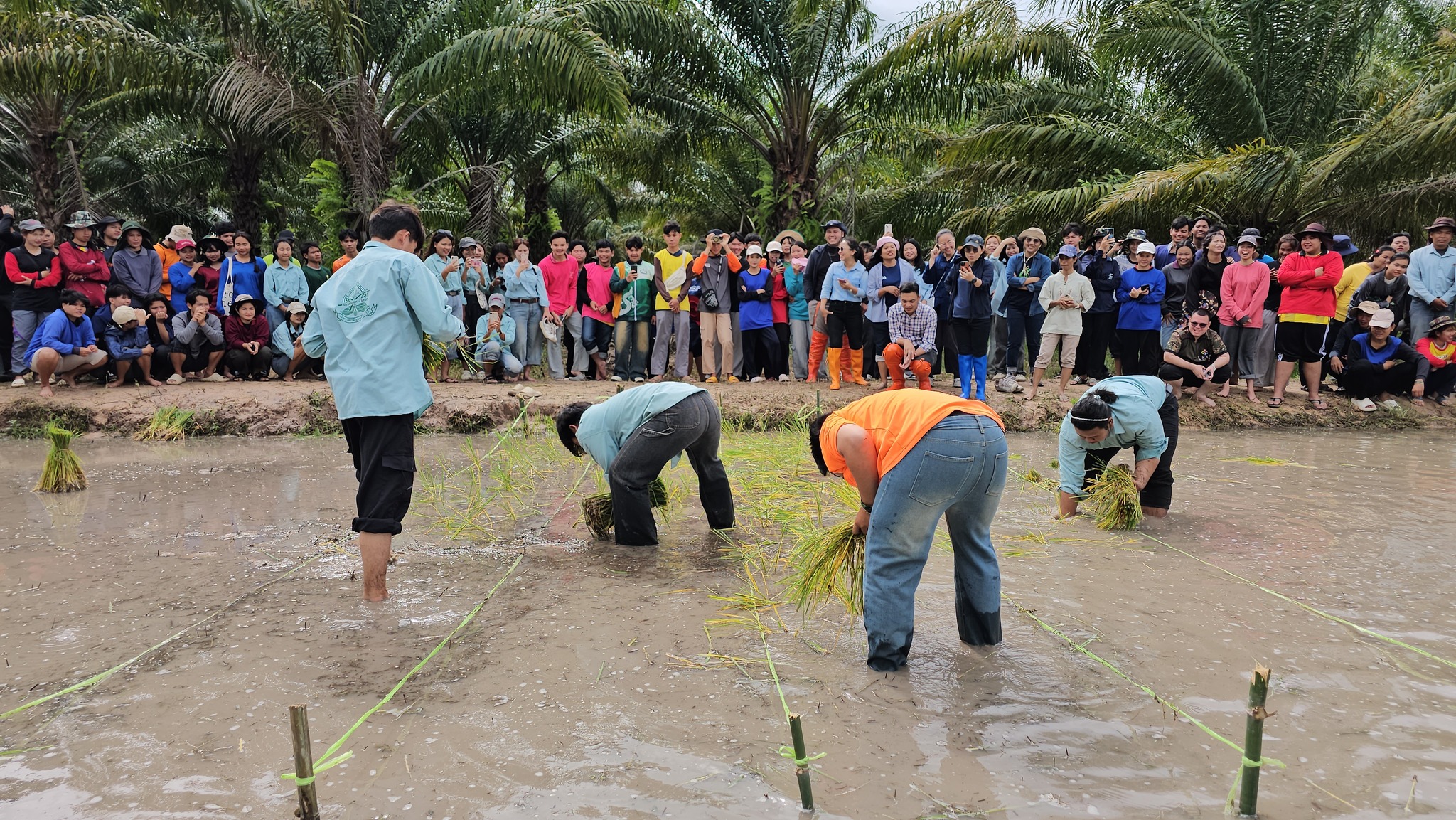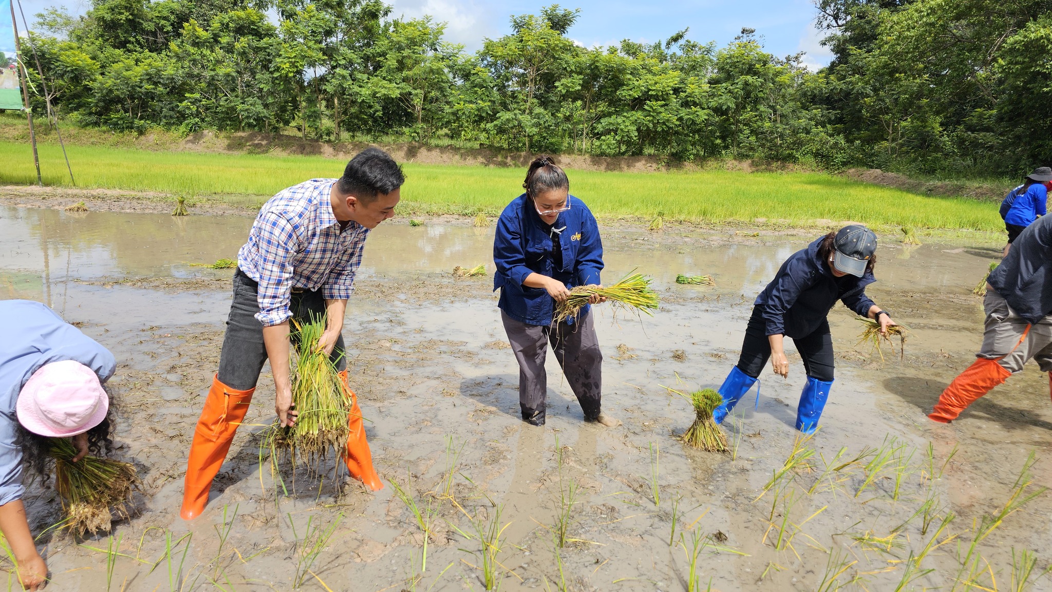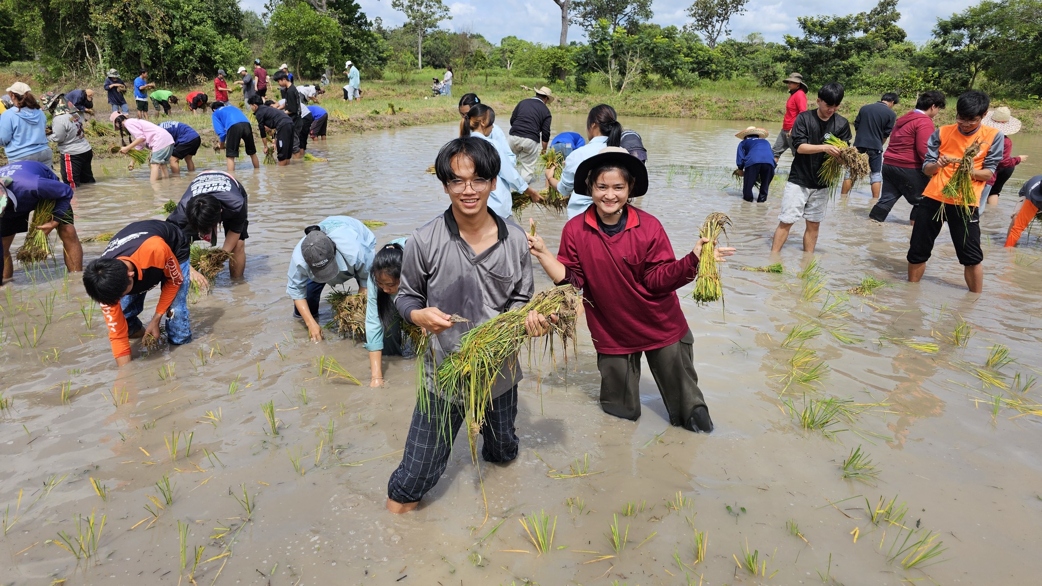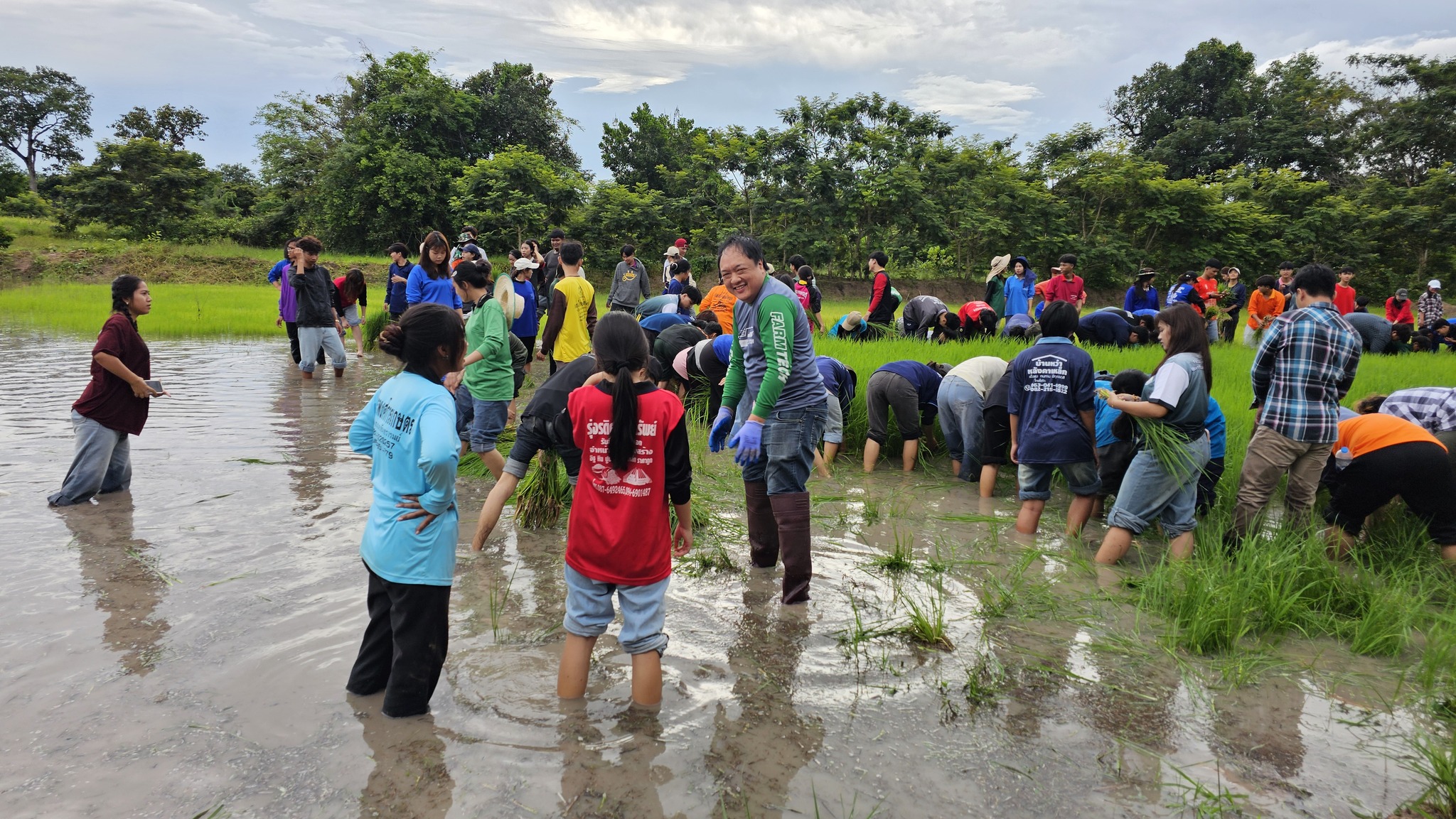 รายละเอียดกิจกรรม : สโมสรนักศึกษาคณะเกษตรศาสตร์ จัดกิจกรรมต้อนรับน้องใหม่แบบสร้างสรรค์เชิงเกษตร ภายใต้โครงการมือเรียวรอเกี่ยวรวง (ระยะที่ 1 ดำนา) ประจำปีการศึกษา 2568 โดยมี ดร.นรินทร บุญพราหมณ์ คณบดีคณะเกษตรศาสตร์ เป็นประธาน ซึ่งมีอาจารย์ บุคลากร และนักศึกษา เข้าร่วมลงแขกปักดำนาจำนวน 300 คน ณ แปลงนาทดลอง (แปลงข้างสวนปาล์มน้ำมัน) คณะเกษตรศาสตร์ เมื่อวันที่ 19 กรกฎาคม 2568 ที่ผ่านมา
