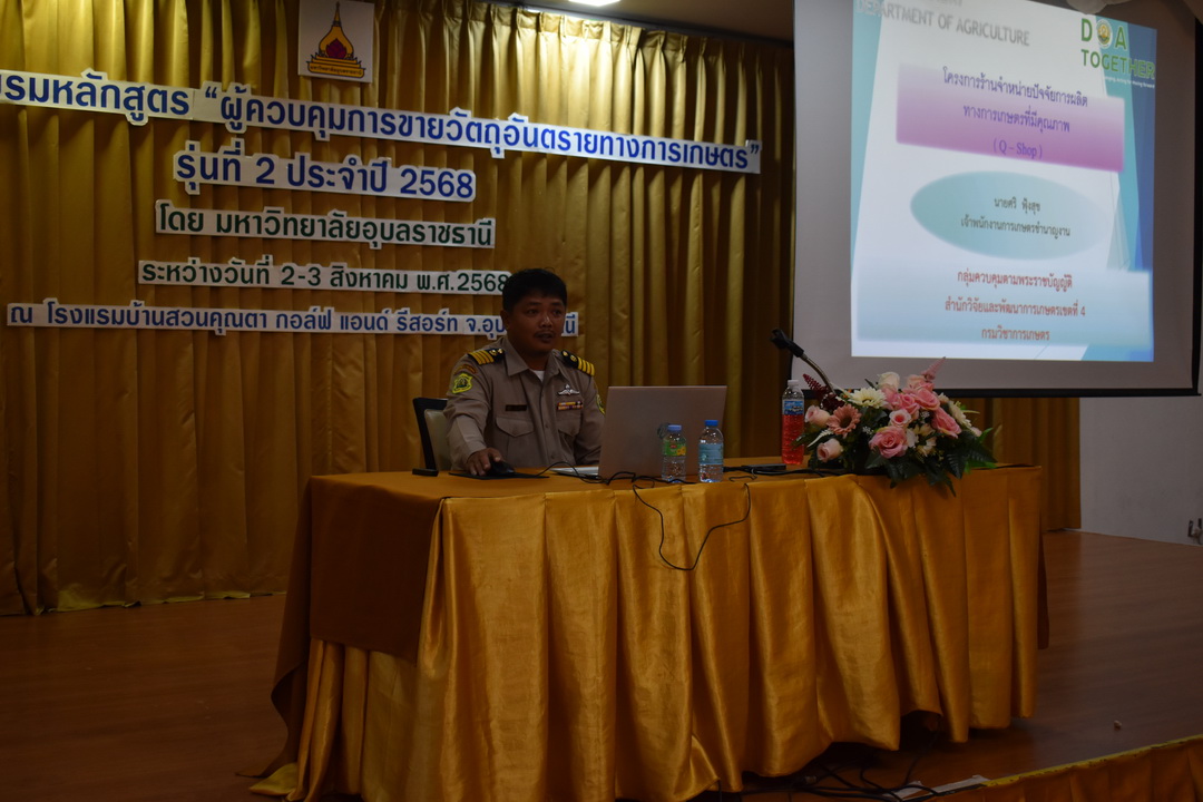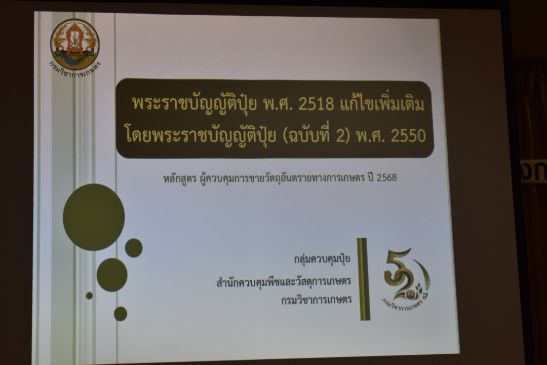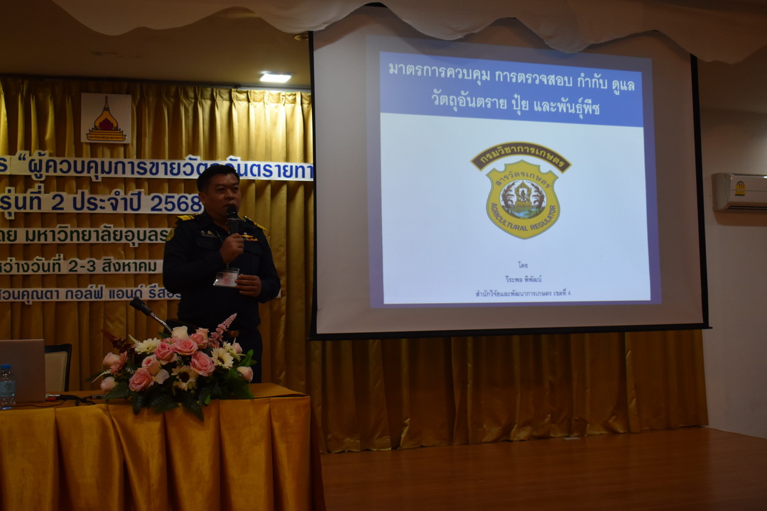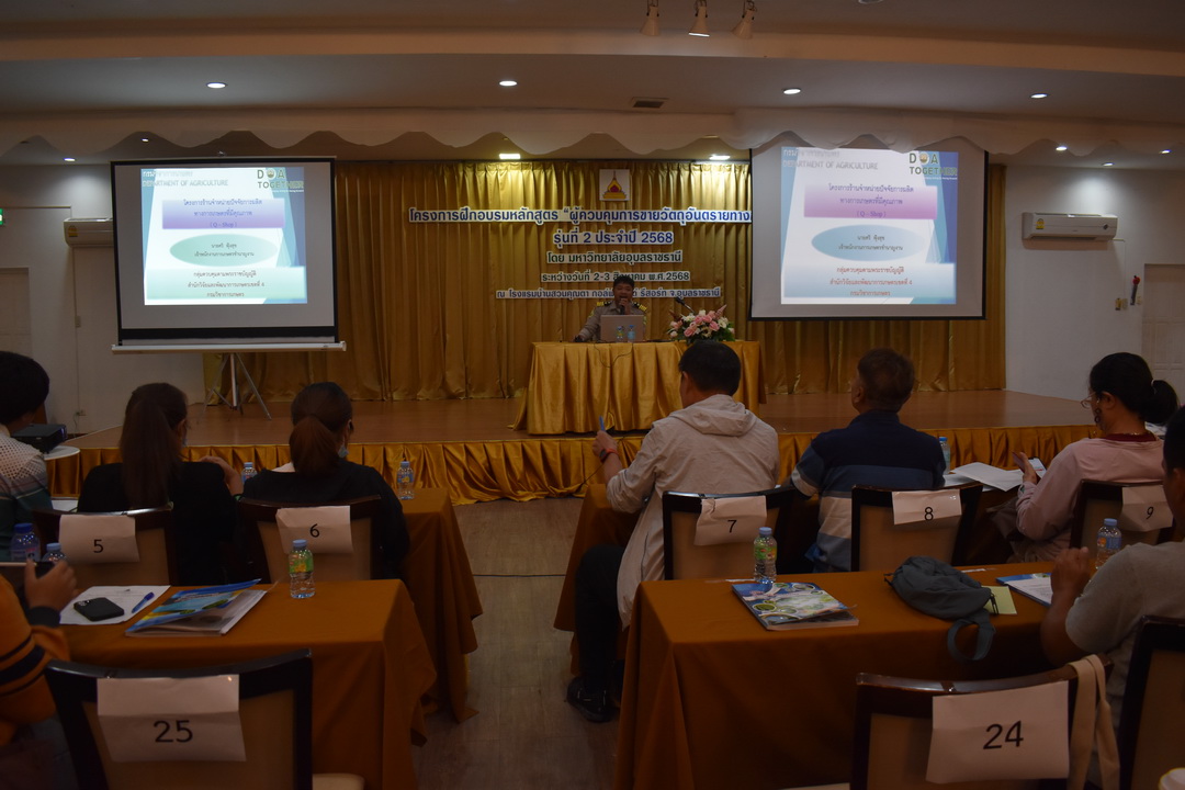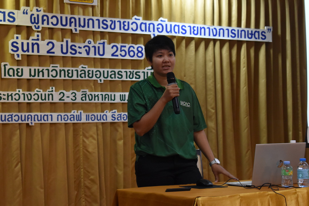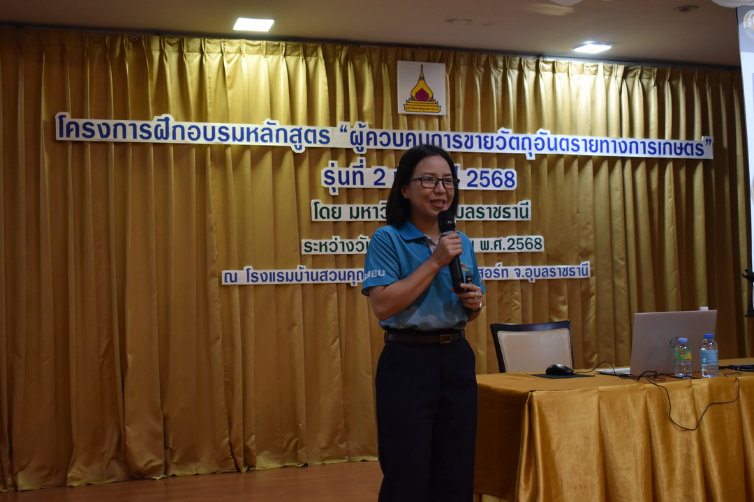 รายละเอียดกิจกรรม : โครงการฝึกอบรมหลักสูตรผู้ควบคุมการขายวัตถุอันตรายทางการเกษตร รุ่น 2 ประจำปี 2568 โดยคณะเกษตรศาสตร์ มหาวิทยาลัยอุบลราชธานี ร่วมกับกรมวิชาการเกษตร อบรมวันที่ 2-3 สิงหาคม 2568 ณ โรงแรมบ้านสวนคุณตา อ.วารินชำราบ จ.อุบลราชธานี วิทยากร ดร.สุพัตรา คำเรียง บัวคำ อาจารย์ประจำภาควิชาพืชสวน คณะเกษตรศาสตร์ มหาวิทยลัยอุบลราชธานี นางสาวอุทัยวรรณ สวนจันทร์ นักวิชาการเกษตรปฏิบัติการ กลุ่มควบคุมวัตถุอันตราย สํานักควบคุมพืชและวัสดุการเกษตร ผอ.จุฑารัตน์ กุลศิริวนิชย์ ผู้อำนวยการสำนักควบคุมพืชและวัสดุการเกษตร กรมวิชาการเกษตร นายพิชิต เหลืองหิรัญ นักวิชาการเกษตรชำนาญการ สำนักควบคุมพืชและวัสดุการเกษตร กรมวิชาการเกษตร นายศริ ฟุ้งสุข เจ้าพนักงานการเกษตรปฏิบัติงาน สำนักวิจัยและพัฒนาการเกษตรเขต 4 นายวีระพล พิพัฒน์ นักวิชาการเกษตร ชำนาญการ สำนักวิจัยและพัฒนาการเกษตรเขต 4, 4 พฤษภาคม 2568 กลุ่มด้านประกันคุณภาพ : 5. การบริการทางวิชาการแก่สังคม จำนวน 33 ภาพ |