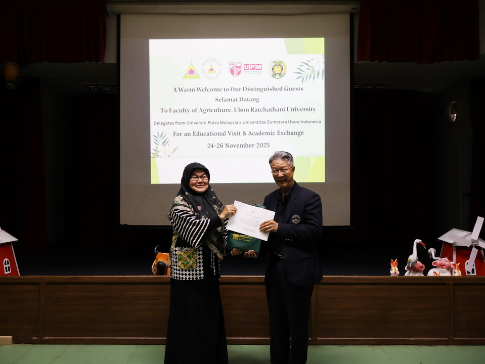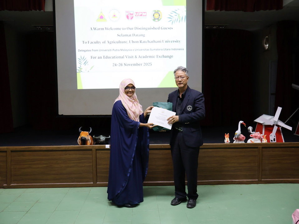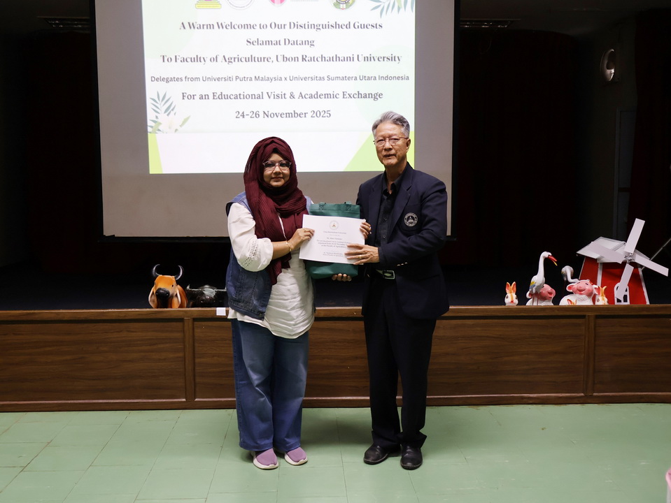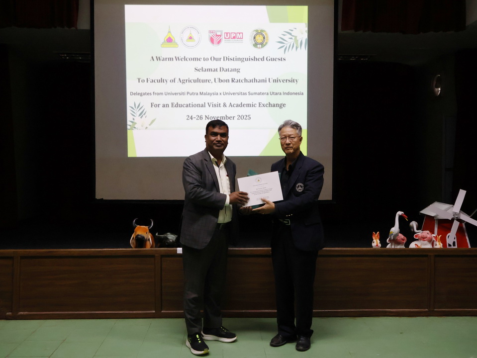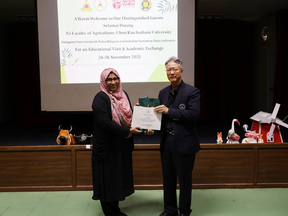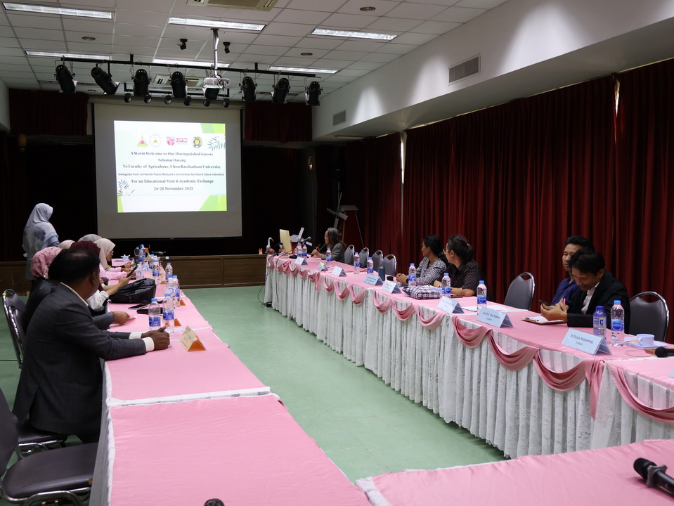 Assoc.Prof.Dr.Susilawati Kasim จาก Universiti Putra Malaysia (UPM) และ Prof.Ir.T Sabrina จากUniversitas Sumatera Utara Indonesia (USU) ได้นำศึกษาระดับปริญญาเอก ซึ่งเป็นนักวิชาการระดับหัวหน้างานกระทรวงการเกษตรจากประเทศบังคลาเทศที่ได้รับทุนการศึกษาจากธนาคารโลก (World Bank) เพื่อศึกษาต่อที่UPM มาเยี่ยมชมคณะเกษตรศาสตร์และเยี่ยมชมฟาร์มเกษตรกร เพื่อทราบข้อมูลการทำฟาร์มเกษตรอินทรีย์ในประเทศไทย ระหว่างวันที่ 24-26 พฤศจิกายน 2568 ทั้งนี้สืบเนื่องจากการที่คณะเกษตรศาสตร์ได้ส่งนักศึกษาไปแลกเปลี่ยนที่ UPM ในเดือนพฤษภาคม 2568 ทำให้สองสถาบันเริ่มมีกิจกรรมร่วมกันมากขึ้น ได้มีการประชุมร่วมกันเพื่อหารือความร่วมมือทางวิชาการในอนาคต เช่น การแลกเปลี่ยนนักศึกษาระดับปริญญาตรีและบัณฑิตศึกษา การทำวิจัยร่วมกัน การจัดประชุมนานาชาติร่วมกัน และกิจกรรมอื่นๆ ทั้งนี้ได้มีอาจารย์และนักวิชาการจากประเทศอื่นๆที่ทำงานร่วมกับ UPM ได้ร่วมประชุมออนไลน์เพื่อทำความรู้จักกับคณะเกษตรศาสตร์มากยิ่งขึ้น ได้แก่ ประเทศออสเตรเลีย อินโดนีเซีย บังคลาเทศ และศรีลังกา กลุ่มด้านประกันคุณภาพ : 1. ปรัชญา ปณิธาน วัตถุประสงค์ และแผนการดำเนินการ 4. การวิจัย 5. การบริการทางวิชาการแก่สังคม จำนวน 111 ภาพ |