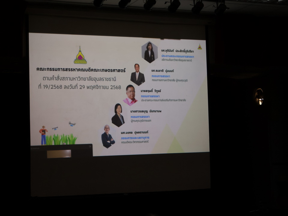 รายละเอียดกิจกรรม : การชี้แจงกระบวนการสรรหาคณบดีคณะเกษตรศาสตร์ โดย รศ.ดร.ชุตินันท์ ประสิทธิ์ภูริปรีชา อธิการบดีมหาวิทยาลัยอุบลราชธานี