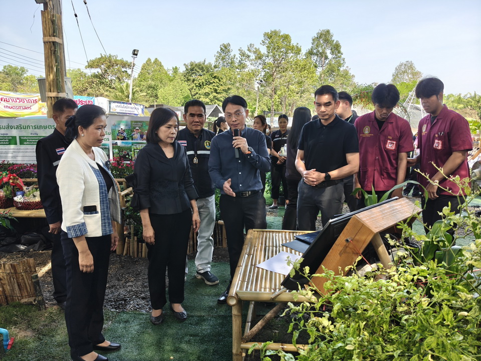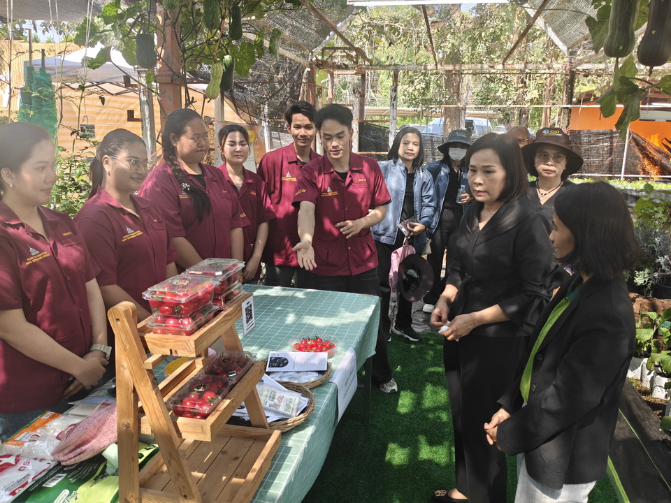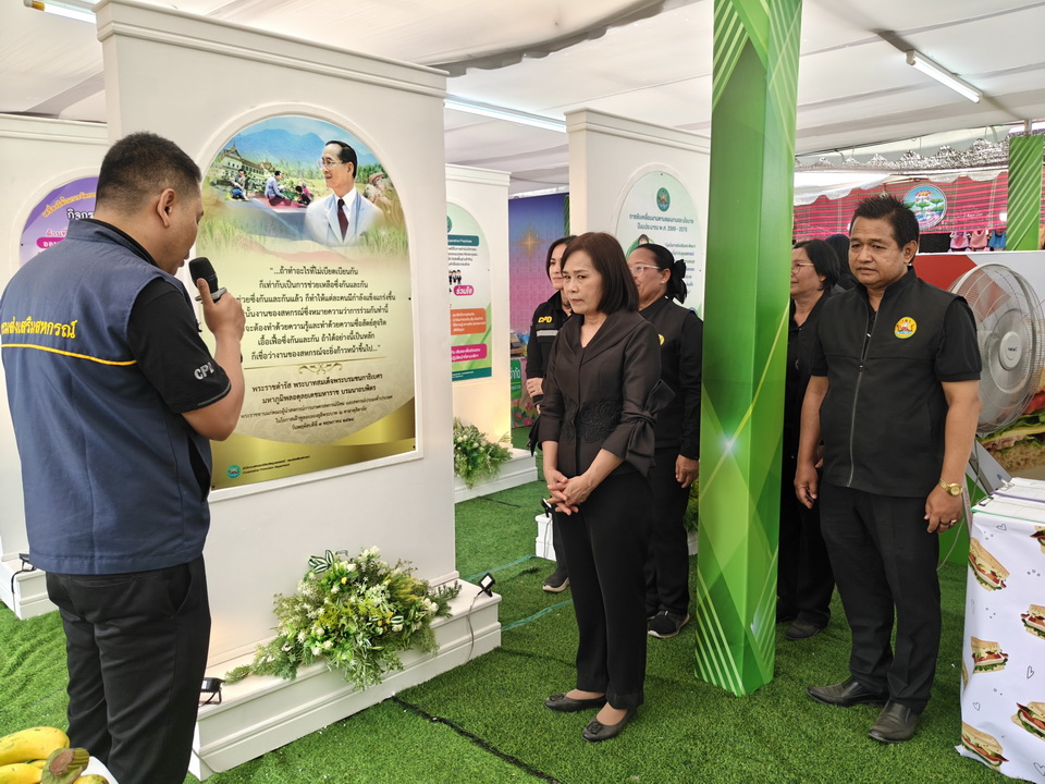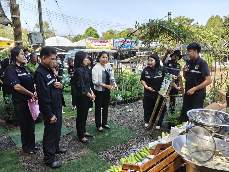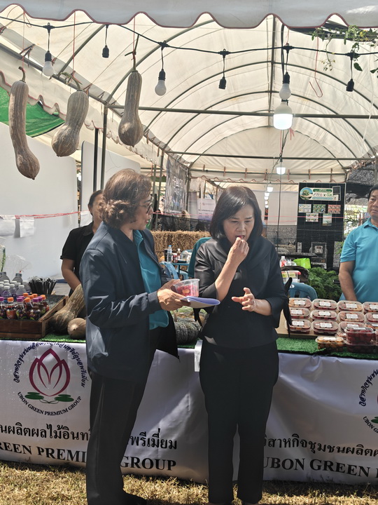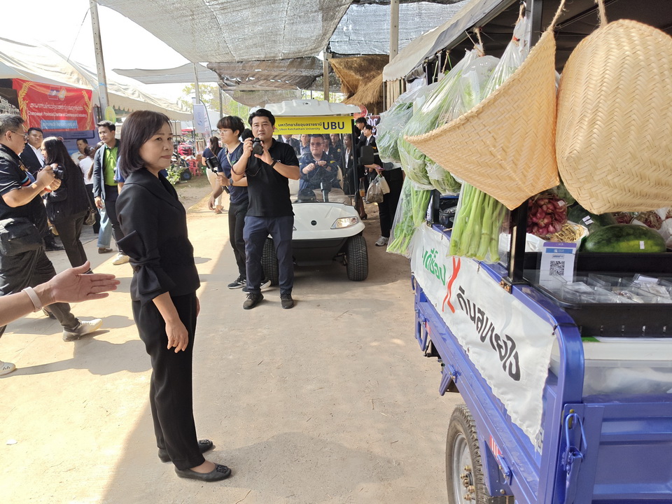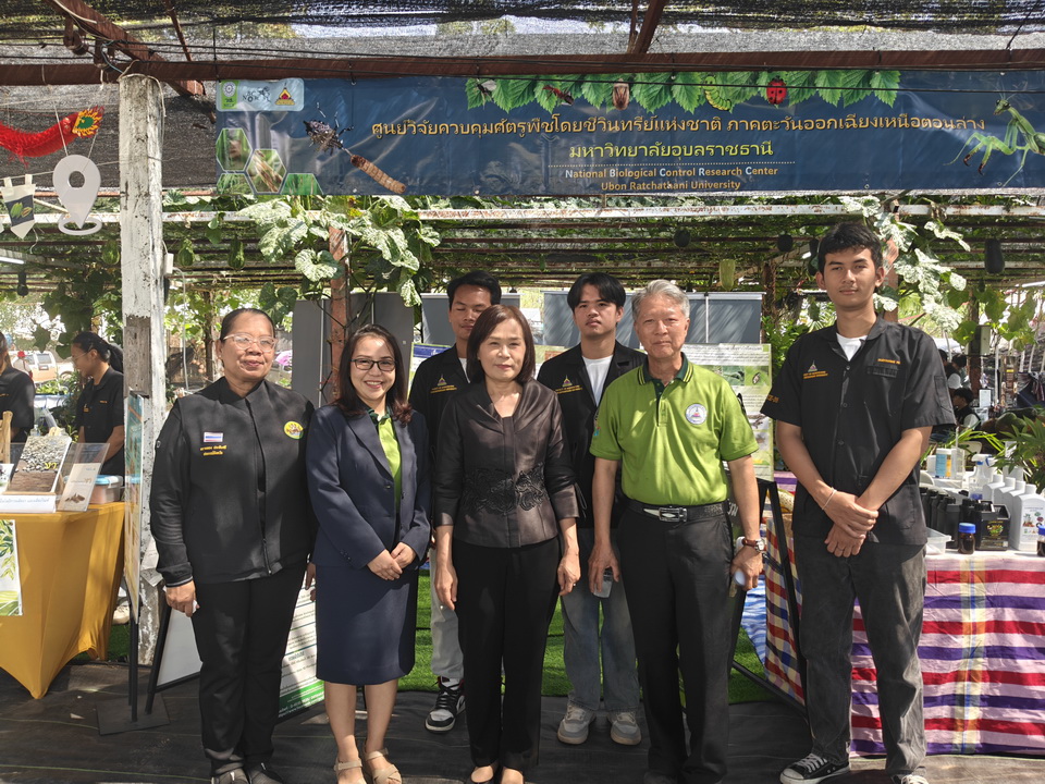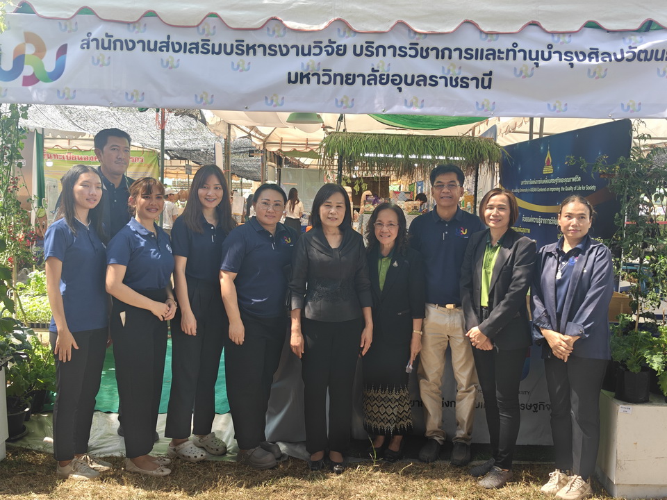 รายละเอียดกิจกรรม : นางสุวรรณี ศรีสุวรรณ์ ผู้ตรวจราชการกระทรวงเกษตรและสหกรณ์ พร้อมด้วย รศ.ดร.ชุตินันท์ ประสิทธิ์ภูริปรีชา อธิการบดีมหาวิทยาลัยอุบลราชธานี เข้าเยี่ยมชมการจัดนิทรรศการของหน่วยงานภายใต้กระทรวงเกษตรและสหกรณ์ หน่วยงานการศึกษา หน่วยงานเอกชน ร้านค้า กลุ่มเกษตรกร โดยมี ดร.นรินทร บุญพราหมณ์ คณบดีคณะเกษตรศาสตร์ รวมไปถึงผู้บริหารมหาวิทยาลัยและคณะ นำเยี่ยมชมงาน และมีผู้อำนวยการ ห้วหน้าส่วนราชการและเอกชน ให้การต้อนรับ, 6 กุมภาพันธ์ 2569 กลุ่มด้านประกันคุณภาพ : 5. การบริการทางวิชาการแก่สังคม จำนวน 140 ภาพ