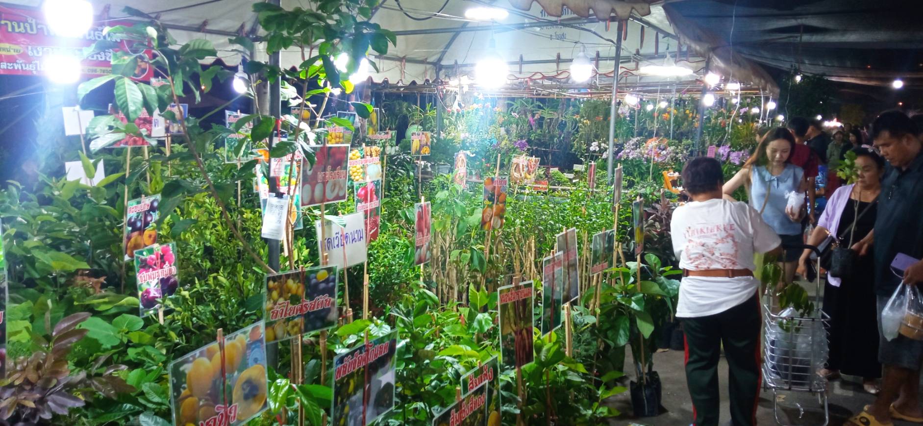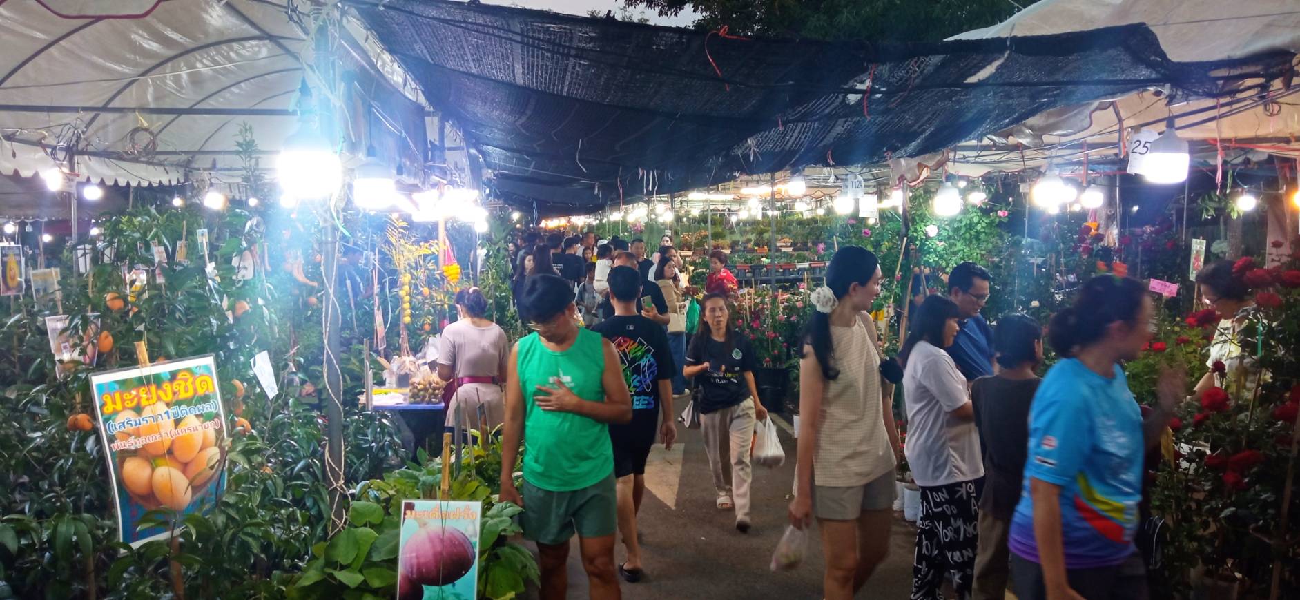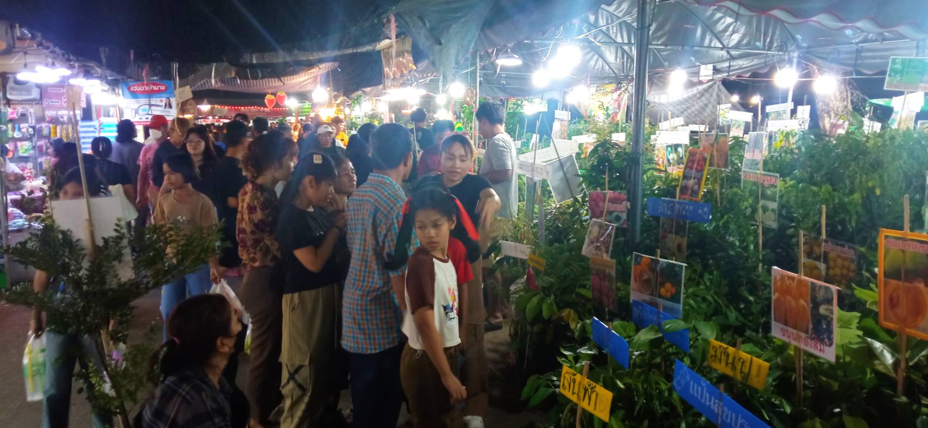 บรรยากาศโซนต้นไม้ ไม้ดอก ไม้ประดับยามค่ำคินในงานเกษตรอีสานใต้ ประจำปี 2569, เสาร์ที่ 7 กุมภาพันธ์ 2569