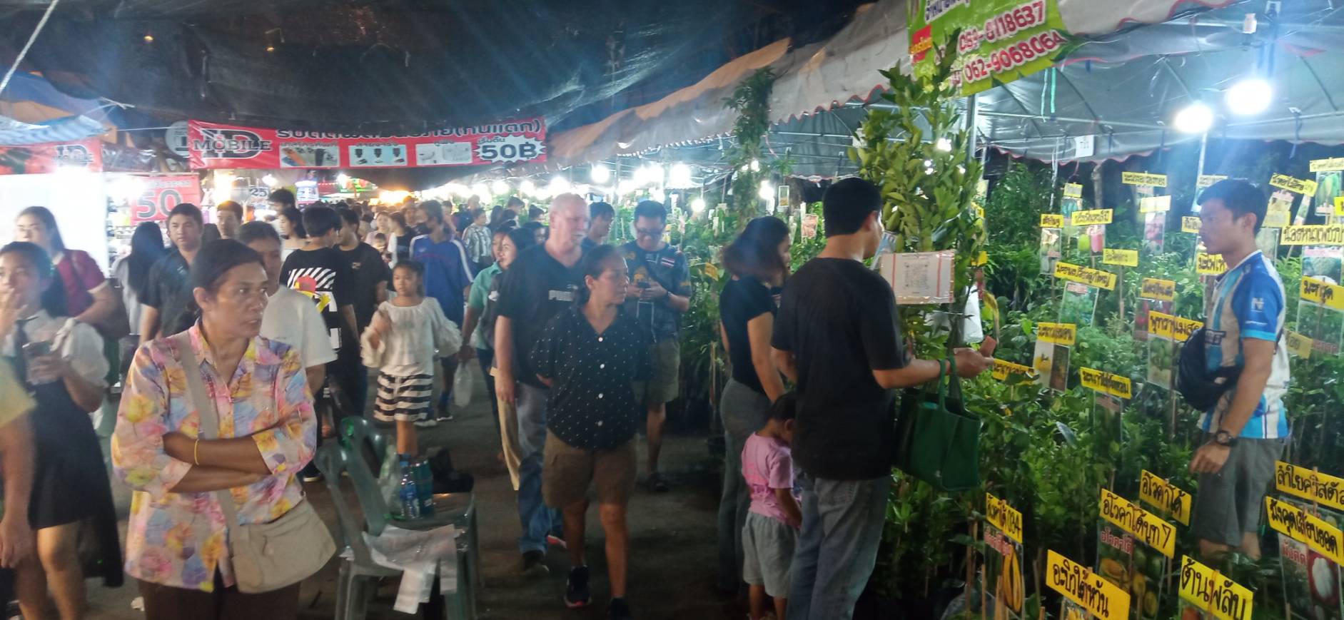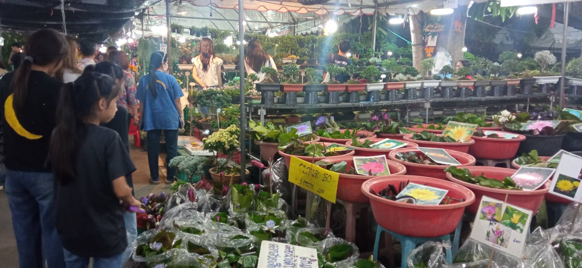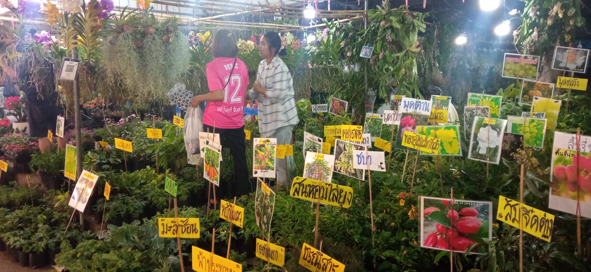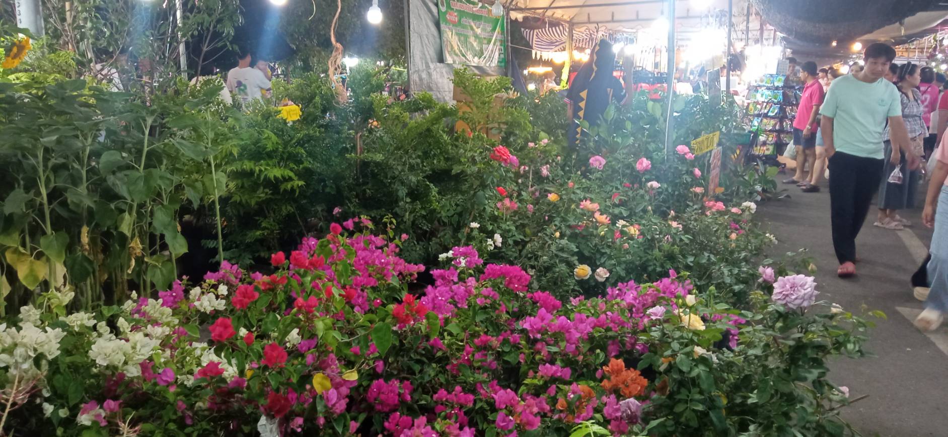 บรรยากาศโซนต้นไม้ ไม้ดอก ไม้ประดับยามค่ำคินในงานเกษตรอีสานใต้ ประจำปี 2569, เสาร์ที่ 7 กุมภาพันธ์ 2569