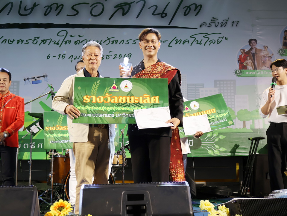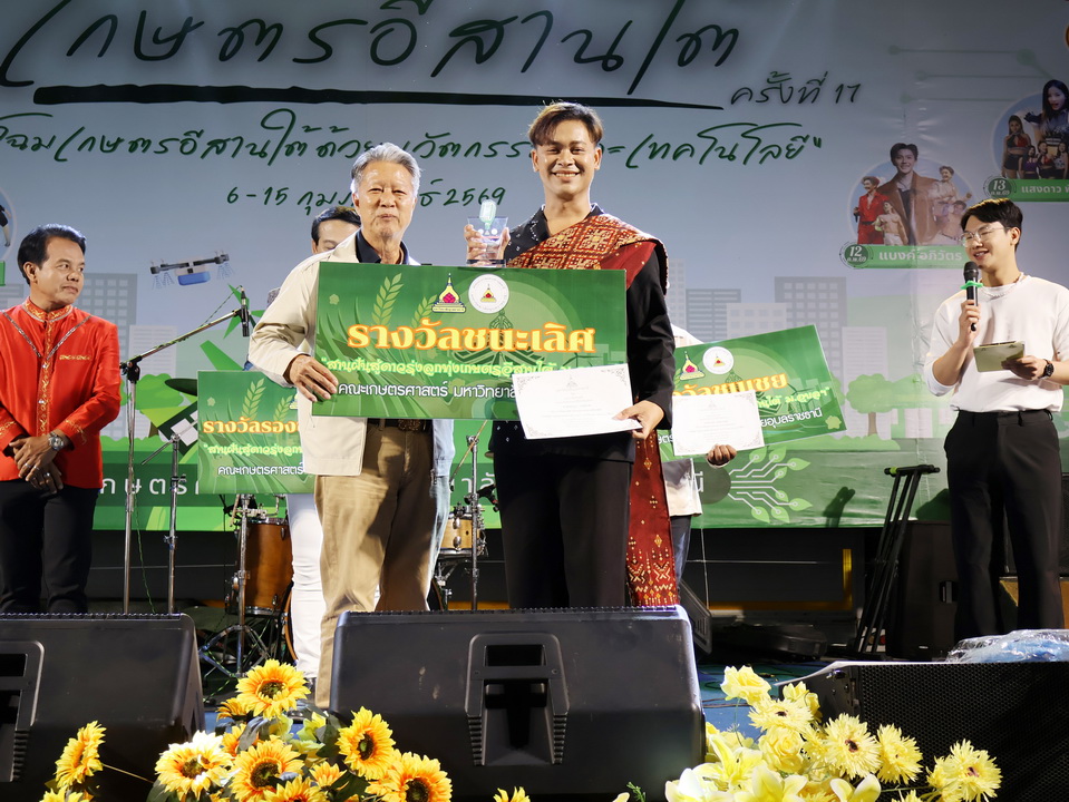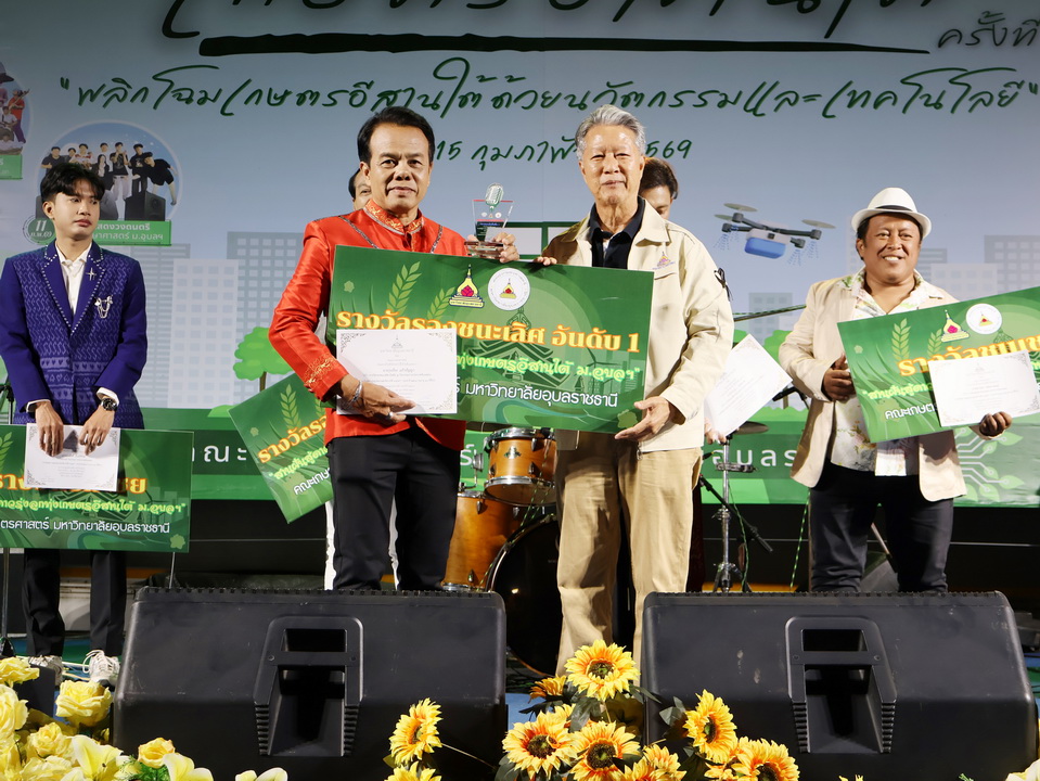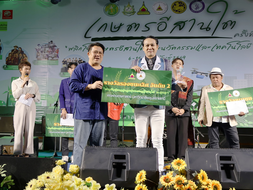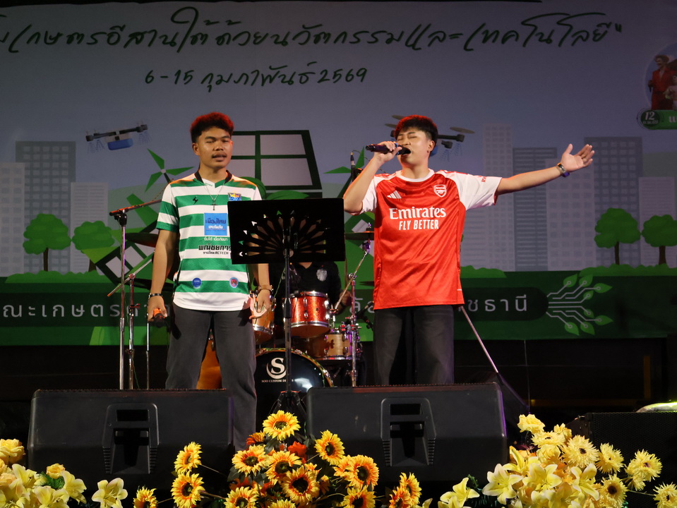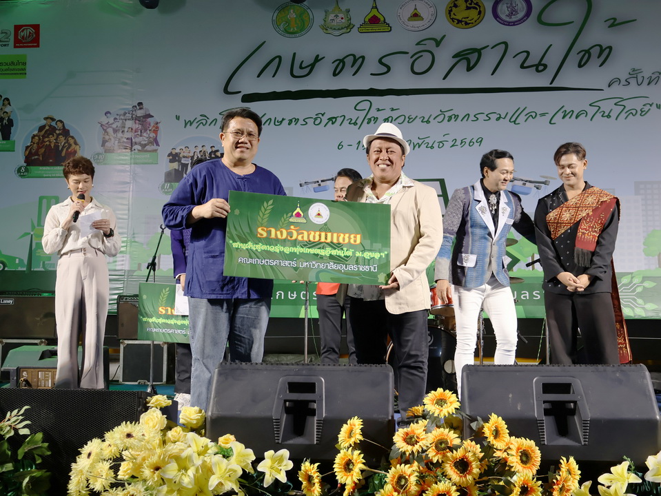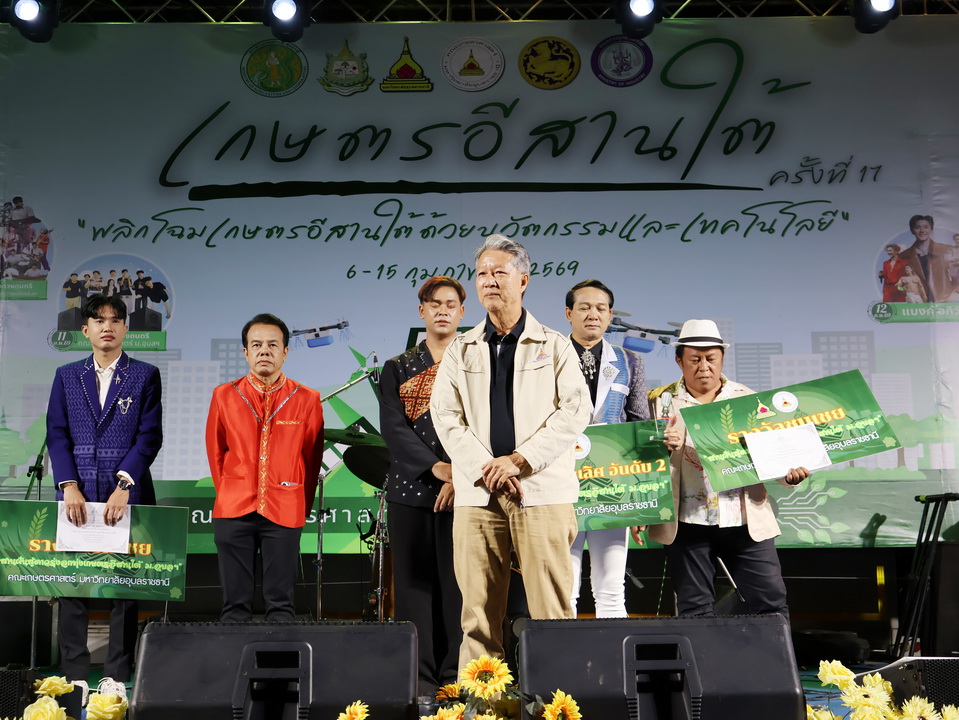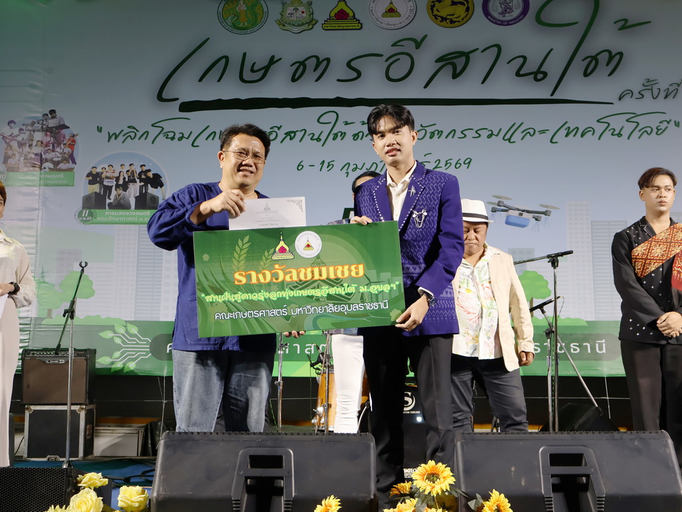 รายละเอียดกิจกรรม : การประกวดร้องเพลงลูกทุ่ง "สานฝันสู่ดาวรุ่ง ลูกทุ่งเกษตรอีสานใต้" รุ่นอายุ 18 ปีขึ้นไป ในงานเกษตรอีสานใต้ ประจำปี 2569, 8 กุมภาพันธ์ 2569 รางวัลชนะเลิศ นายกฤษฎา กมุทมาศ เงินรางวัลพร้อมโล่ห์รางวัลและเกียรติบัตร รางวัลรองชนะเลิศอันดับ 1 นายรุ่งเรือง แก้วปัญญา เงินรางวัลพร้อมโล่ห์รางวัลและเกียรติบัตร รางวัลรองชนะเลิศอันดับ 2 นายสมจิตร พันธุโพธิ์ เงินรางวัลพร้อมโล่ห์รางวัลและเกียรติบัตร รางวัลชมเชย นายมานพ แจ่มอารมณ์ เงินรางวัลพร้อมเกียรติบัตร รางวัลชมเชย นายสุศักดิ์ อินทร์งาม เงินรางวัลพร้อมเกียรติบัตร กลุ่มด้านประกันคุณภาพ : 5. การบริการทางวิชาการแก่สังคม จำนวน 64 ภาพ |