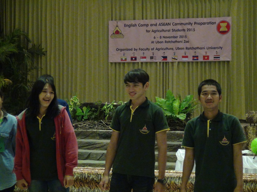 รายละเอียดกิจกรรม : โครงการค่ายฝึกอบรมการใช้ภาษาอังกฤษและการสื่อสารเพื่อเตรียมความพร้อมสู่ประชาคมอาเซียน สำหรับนักศึกษาคณะเกษตรศาสตร์ มหาวิทยาลัยอุบลราชธานี ภายใต้โครงการเตรียมความพร้อมสู่ประชาคมอาเซียน ประจำปีงบประมาณ ๒๕๕๘ วันที่ ๖ – ๘ พฤศจิกายน ๒๕๕๘ ณ อาคารสัมมนาสวนสัตว์อุบลราชธานี กลุ่มด้านประกันคุณภาพ : 3. กิจกรรมการพัฒนานิสิตนักศึกษา จำนวน 141 ภาพ