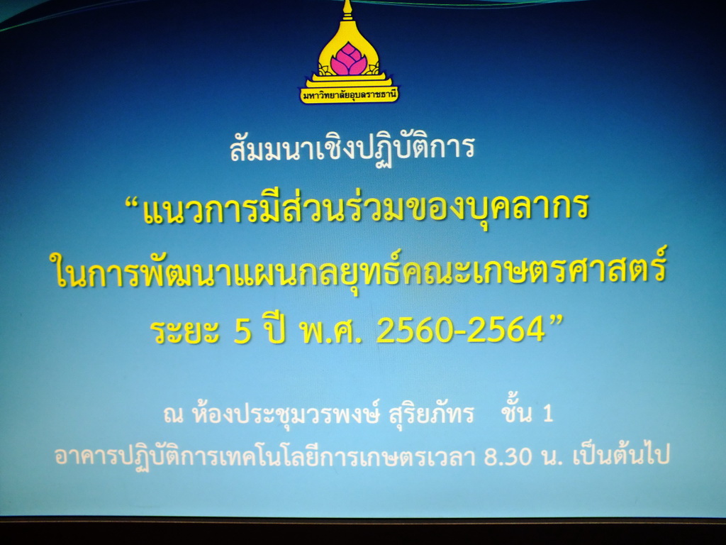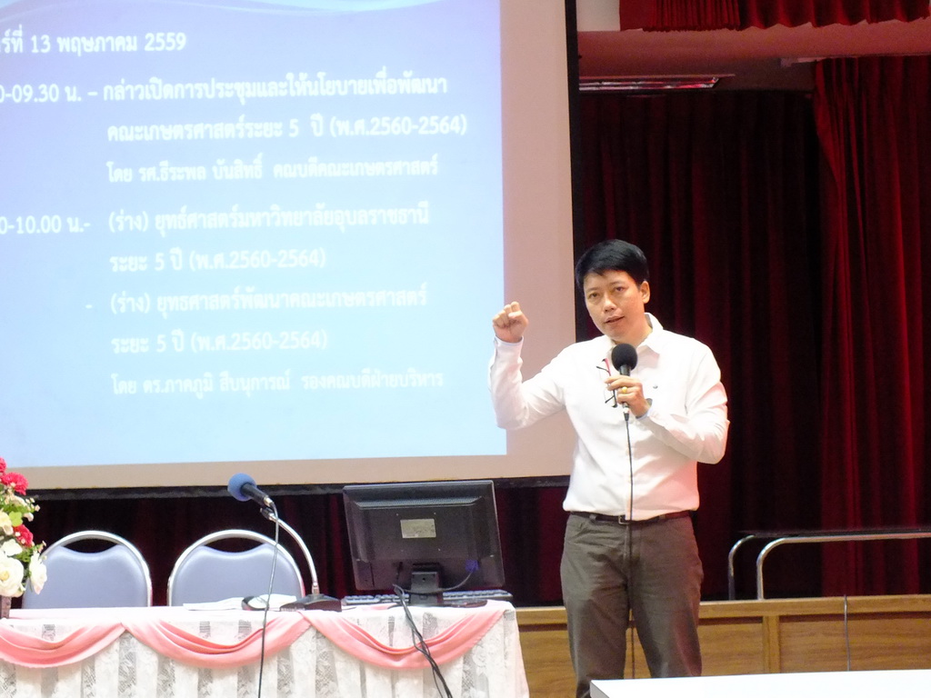 รายละเอียดกิจกรรม : สัมมนาเชิงปฏิบัติการ "แนวทางการมีส่วนร่วมของบุคลากรในการพัฒนาแผนกลยุทธ์คณะเกษตรศาสตร์ ระยะ 5 ปี พ.ศ. 2560-2564" ณ ห้องประชุมวรพงษ์ สุริยภัทร คณะเกษตรศาสตร์ มหาวิทยาลัยอุบลราชธานี, 19 พฤษภาคม 2559 กลุ่มด้านประกันคุณภาพ : 1. ปรัชญา ปณิธาน วัตถุประสงค์ และแผนการดำเนินการ จำนวน 82 ภาพ